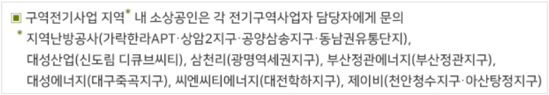 다만, 구역 전기사업 지역 내 소상공인은 각 전기구역 사업자 담당자에게 문의해 주세요!